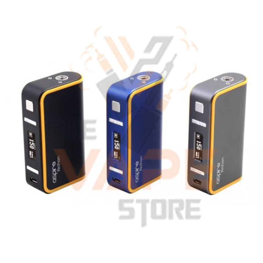 Aspire Archon Mod. The Archod is a dual bay 18650 battery mod which delivers up to 150W of power. The heavy duty mod allows you to customize your mod with just a few clicks of a button and contains a child lock option. The Archon Mod utilizes two 18650 batteries and features a 0.86 display screen capable of both bypass and TC modes. The Archon utilizes 2A fast charge and is customizable in both power and temperature mode switches. (0.05-3.5) in temperature mode with a power mode range of (0.1-4.0). The Aspire Archon has a resistance range of (0.05ohm-3.5ohm), and a (0.8.5V). Archon is equipped with a spring loaded 510 thread. The Archon mod is constructed of Zinc Alloy material and provides a comfortable feel in your hands.