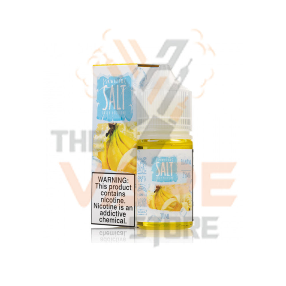 ICE Banana by SKWEZED SALT, featuring delightful notes of tasty bananas and refreshing menthol in a decadently refreshing nicotine salt solution.ICE BANANA – SKWEZED SALT – 30ML