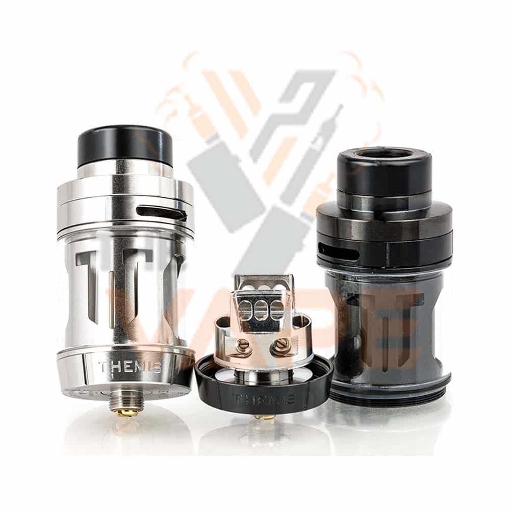 Digiflavor Themis 25mm RTA by Digiflavor is the avent-garde of top airflow rebuildable system, featuring an innovative interchangeable build deck design with Dual Coil Version and Mesh Version along with dynamic, leak-proof top airflow performance. The maximum juice capacity is 5 milliliters, accessed threaded top-fill method. The central core of the Themis RTA is the embodiment of innovation and versatility, featuring an interchangeable build deck with two versatile designs. The Dual Coil Version comes with a postless, quad terminals style to accommodate a wide range of single or dual coil configurations. The Mesh Version is built to accommodate the flavor-orientated mesh wires, with the option of accommodating various single builds as well. Similar in designs to the Zeus RTA, the leak-proof structure focuses upon the dual top airflow design. The air channel travels downward to dual three-slotted internal side walls and into the coil structure before rising vertically through the chimney. Furthermore, the kit includes a 510 Delrin widebore drip tip with the optional 810 Delrin widebore drip tip for extended versatility.