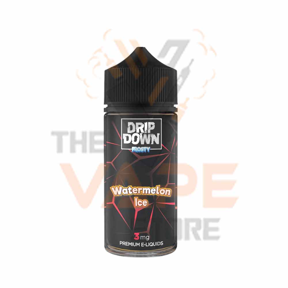 Drip Down Frosty Watermelon Ice e-liquid. This 100ml bottle is a must-try for vapers seeking a delightful burst of fruity goodness coupled with a cool and invigorating sensation.
