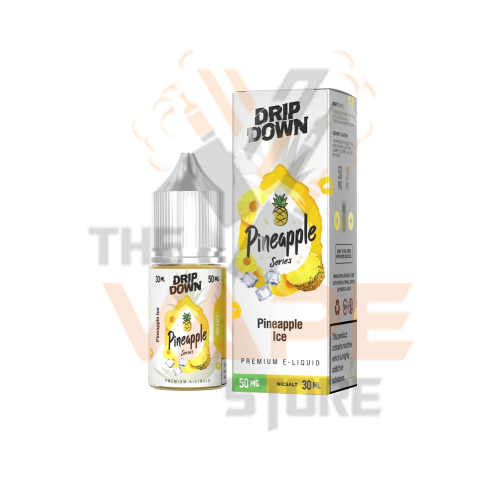 Drip Down Pineapple Ice 30ml – Pineapple Series. This refreshing e-liquid blends the sweet and tangy notes of ripe pineapple with a cool, icy finish.