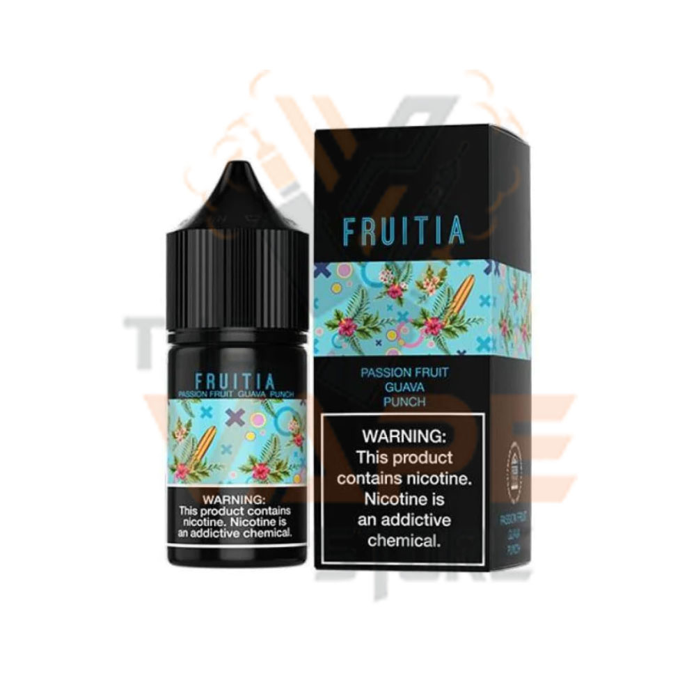 - 1 x 30ml bottle of Fruitia Passion Fruit Guava Punch Salt by Fresh Farms