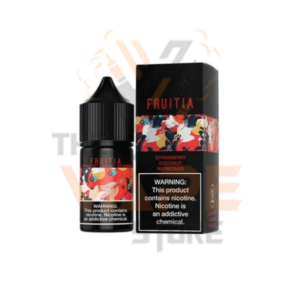 Fruitia Strawberry Coconut Refresher Salt vape juice from Fresh Farms comes in a 30ml bottle and has a balanced ratio for some good hits to the throat.