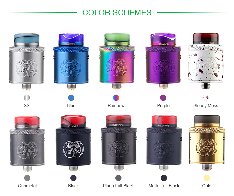 Hellvape Drop Dead RDA! Inheriting from Dead Rabbit RDA, the Drop Dead RDA is a new flavor chasing RDA with 24mm diameter and colorful resin drip tip. With an innovative proven build deck for single coil or dual coils building, you can easily DROP your coils in and trim coil legs after installation. What’s more, the Drop Dead RDA adopts an intelligent high side downward sloping airflow with 14 side airflow holes to maximize flavor, minimize leaking and bring you an extremely smooth and tasty vaping experience.