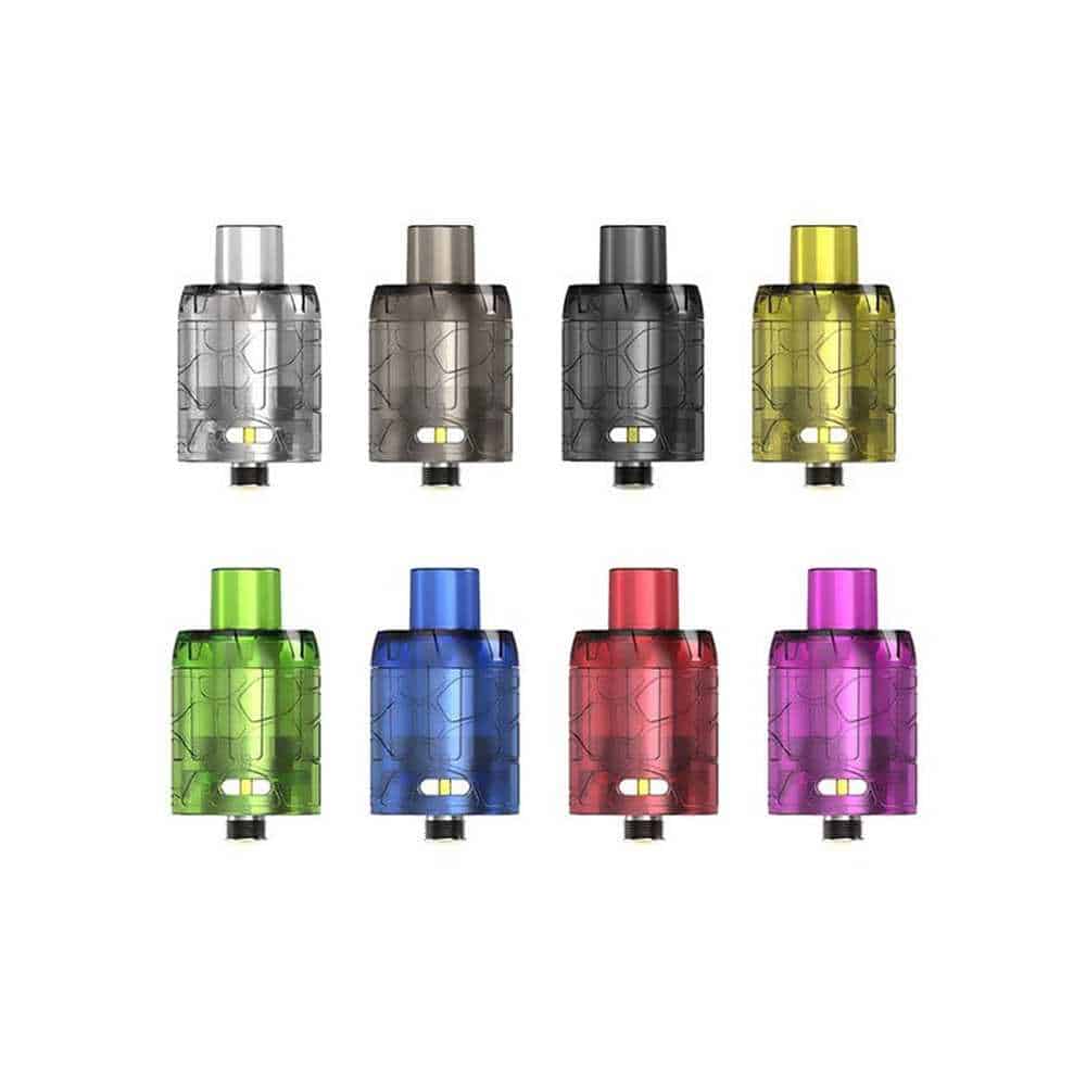 The iJoy Mystique Mesh Disposable 24mm Tank is a durable plastic mesh coil tank, featuring an integrated coil, 3mL juice capacity, and a dual slotted adjustable bottom airflow control ring. The Mystique Mesh tank is formed from durable plastic, resistant to moderate falls and drops and can be refilled and reused.