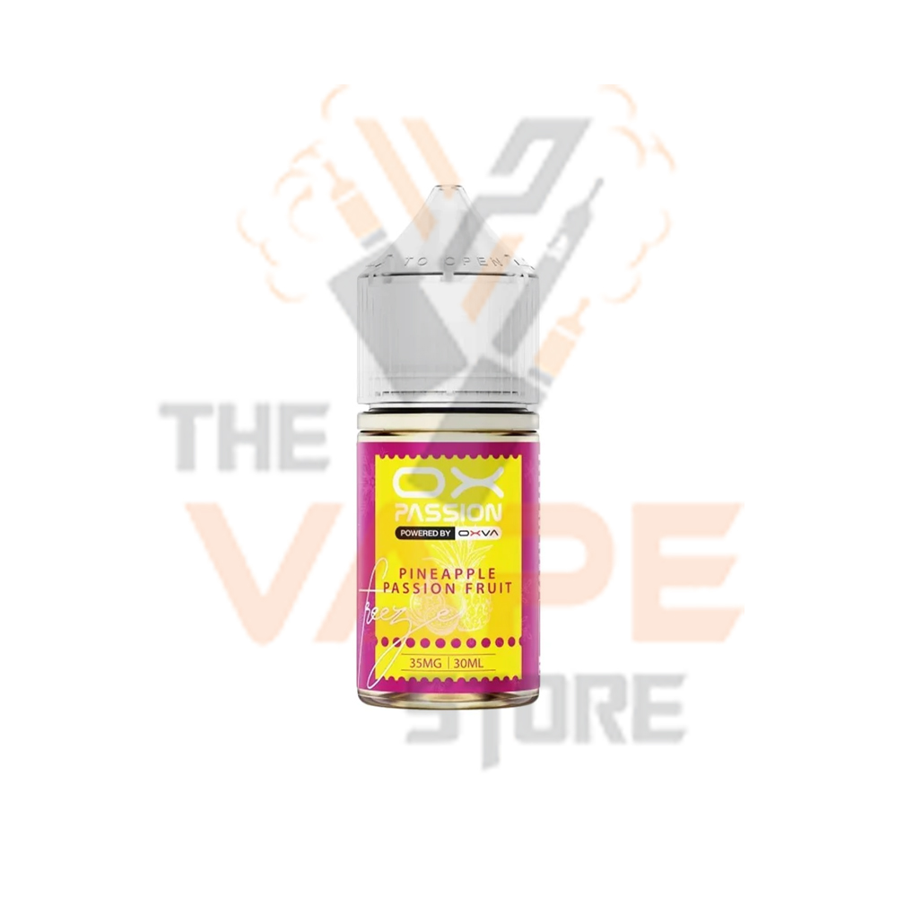 OXVA OX Passion Pineapple Passion Fruit Freeze Saltnic Ice 30ml delivers a vibrant and exotic tropical blend crafted for vapers who enjoy bold and refreshing flavors. This premium e-liquid combines the juicy sweetness of pineapple with the tangy, aromatic notes of passion fruit, creating a lively and well-balanced taste. The added icy undertone enhances the fruit mix with a cool, crisp finish, making each puff refreshing without overpowering the natural flavor profile. With its smooth 35MG nicotine strength, this saltnic blend offers a satisfying throat hit ideal for MTL (mouth-to-lung) vapers looking for a flavorful yet comfortable experience.