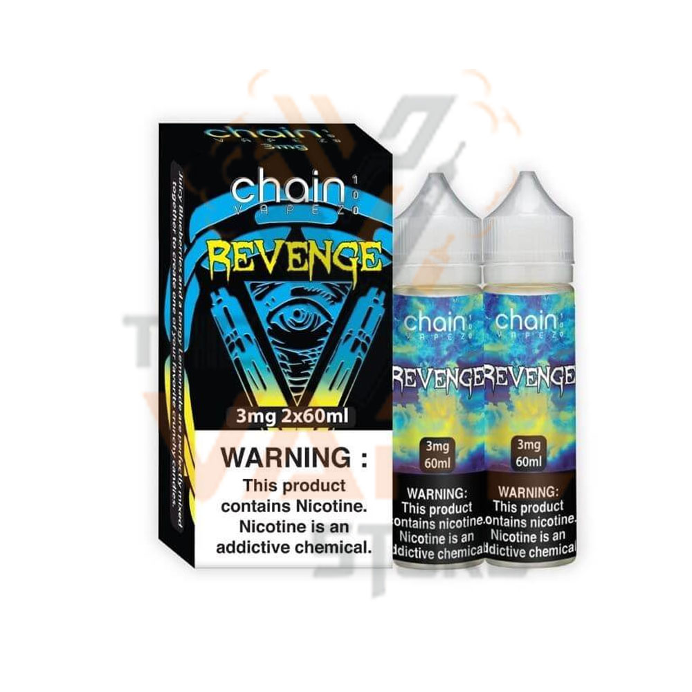 One of your favorite crispy candies from Chain Vapez, “Revenge,” is crafted by expertly combining acidic lemonade and delicious blueberries