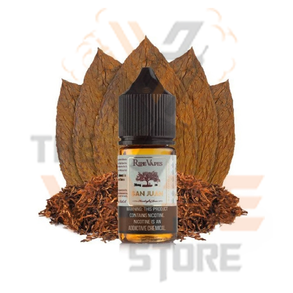 San Juan by Ripe Vapes Handcrafted Salts e-liquid is a yummy cigar flavor that’s inspired by the luscious tobacco of the Caribbean islands. This sweet, rich tobacco flavor is unbelievably smooth.