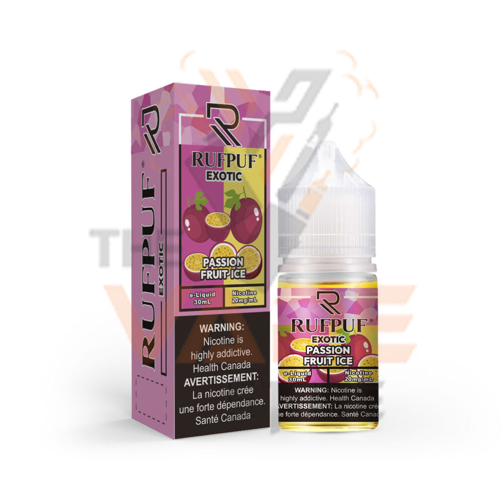 RufPuf Exotic Passion Fruit Ice Nic Salt, a 30ml symphony of tropical bliss. That take you to the relaxing journey with each puff, immerse yourself in the perfect fusion of succulent passion fruit and a crisp, icy undertone, delivering a truly exhilarating vaping experience.
