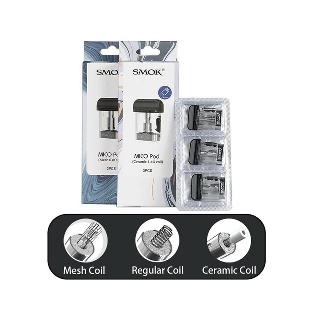The SMOK Mico replacement cartridges are here! Designed for the SMOK Mico pod mod, every cartridge carries 1.7mls of E-Liquid. You have three ohm levels to choose from, 1.4, 0.8ohms. All are great with either traditional e-liquid or nic salts!