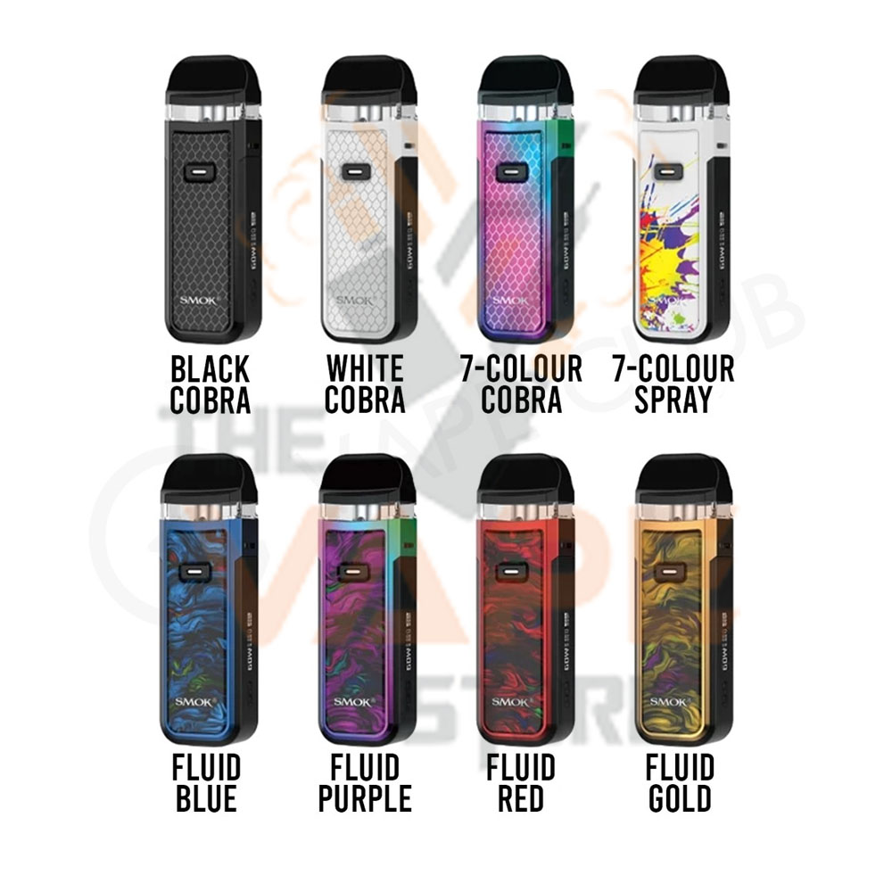 SMOK NORD X 60W Pod System, featuring an adjustable 5-60W range, IP67 intrusion rating, and compatibility with the RPM & RPM 2 Coil Series. Integrating a 1500mAh rechargeable battery, the NORD X Pod System can deliver up to 60W of output, ideal for pairing with the RPM & RPM 2 Coils. Utilizing 6mL refillable pods, the SMOK NORD X accepts coils in a bottom press fit connection, allowing quick and easy coil changes. Constructed from durable zinc-alloy, the chassis of the NORD X is rated IP67, preventing the intrusion of dust or water, and is shock-proof, granting protection against light falls and drops. Displaying information on the side mounted OLED Display Screen, the NORD X relays critical vaping data back to the user in a legible easy to read manner.