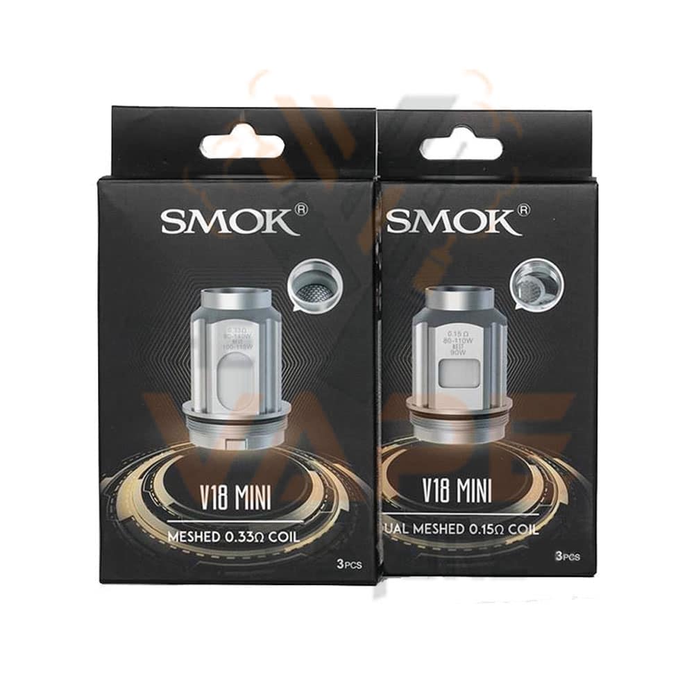 SMOK TFV18 Mini Replacement Coils explicitly designed for the SMOK TFV18 Mini Tank and the SMOK Fortis Kit. The TFV18 Mini Coil is available in 0.2ohm/0.33ohm and 0.15ohm resistance, allowing you to personalize your vaping preference or try all of the TFV18 Mini coils, with each one offering a unique vaping style and advantage.
