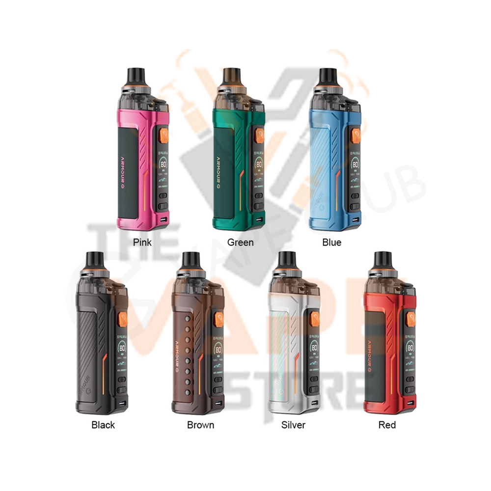 The Armour G is powered by a 3000mAh rechargeable battery, delivering up to 80W of output. It’s compact yet powerful, making it a great option for on-the-go vaping without sacrificing performance.
