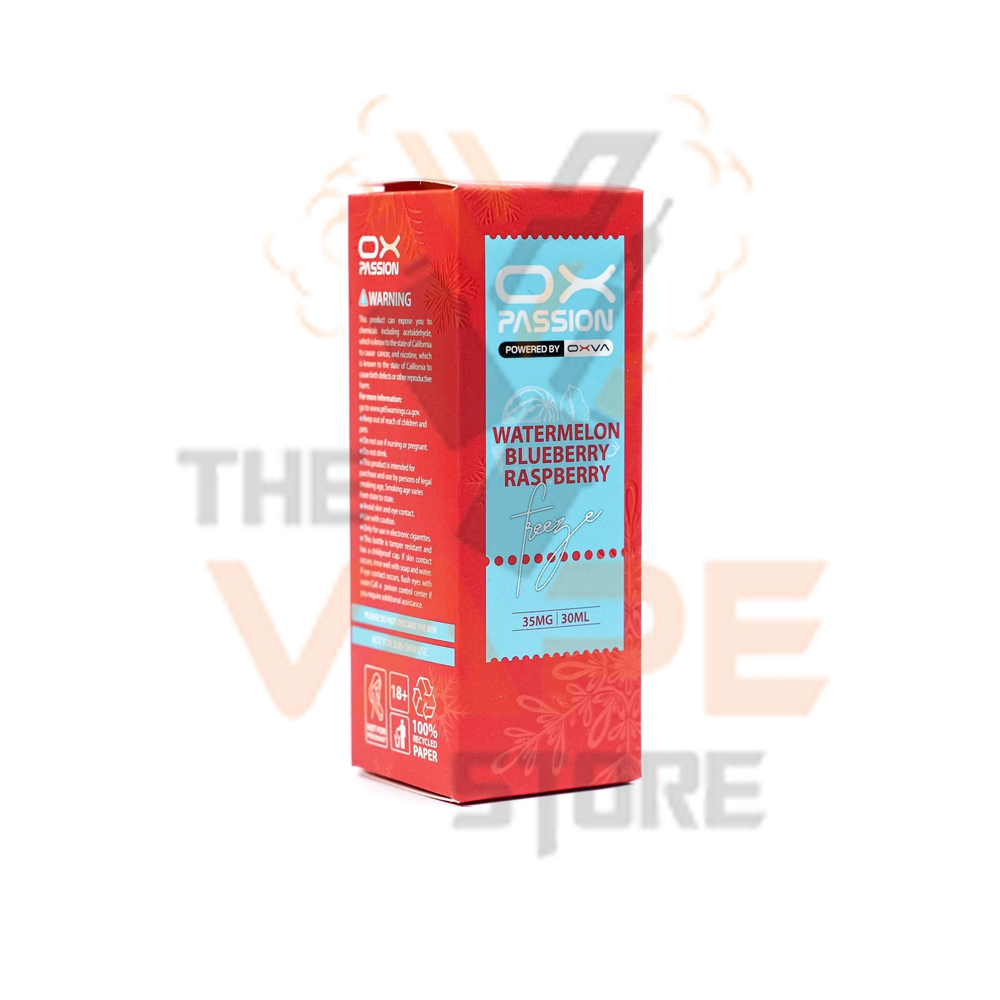 OX Passion Freeze Watermelon Blueberry Raspberry By Oxva A juicy trio of watermelon, blueberry, and raspberry, blended with a crisp icy exhale. This flavour delivers sweet, tangy, and refreshing notes in perfect harmony.