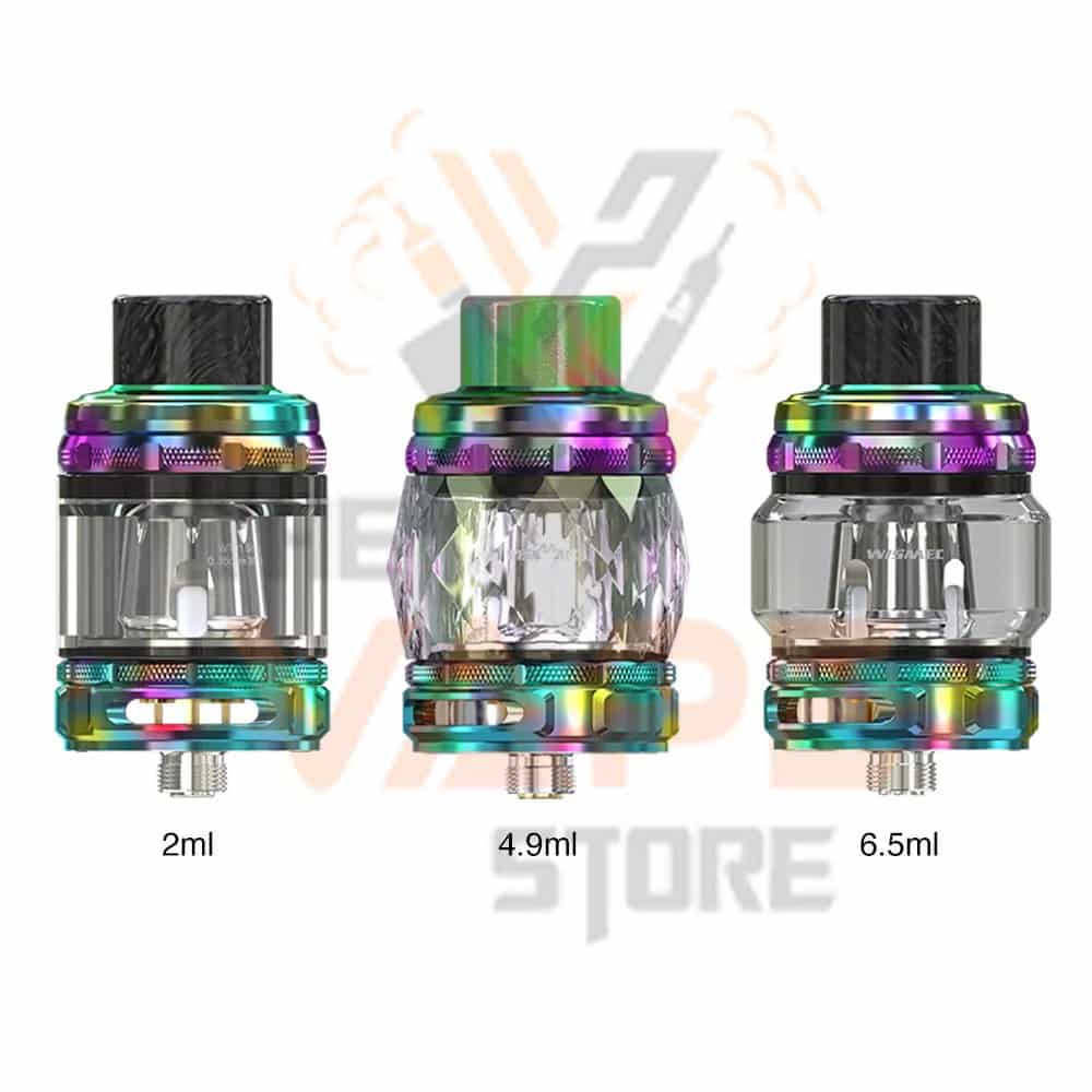 Wismec Trough Tank comes with 6.5ml and 4.9ml E-juice capacity. It adopts an innovative technology – Environment-friendly Vacuum Plating to ensure better color durability and excellent texture. It features new WT01 Single 0.35ohm Head and WT02 Dual 0.2ohm Head for pure flavor and massive cloud. The WT coil adopts the brand-new cotton, with the formula consisting of 30% wood pulp and 70% organic cotton. It will provide you a pure vaping flavor. With the 360° diversion E-liquid leading system and quick sliding top filling design, it can 360° Diversion E-liquid Leading System. There also has the large airflow slot & adjustable airflow control system, which can bring more air in and produce huge cloud. Also you can adjust the airflow to your preference. 6.5ml Version comes with 4 colors: Gold, Silver, Rainbow, Black. 4.9ml Version comes with Rainbow Crystal.